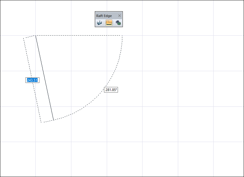 With the Raft Edge command, the borders of the raft foundations of the concrete design that are not defined by the strips or shearwalls are defined. In some cases, some edges of the raft foundations are not covered with these elements, they are empty. In order to define raft foundation in these areas, the boundaries of raft foundation must be defined by the raft edge.