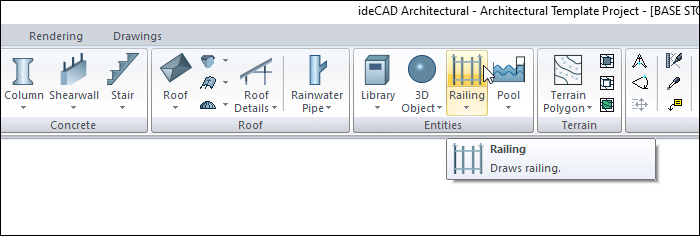 Determine the 1st point of the railing in the drawing area by clicking with the left mouse button.