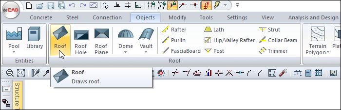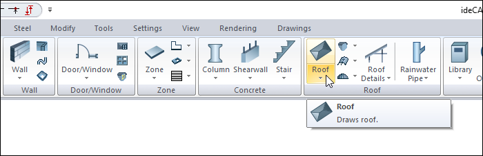 With the roof command, the roof is created by drawing roof boundaries (an enclosed area) in the drawing area.