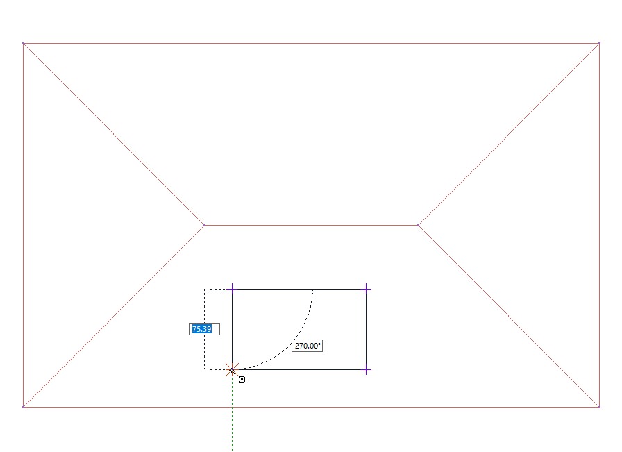 Determining the first point for the roof hole on the roof or roof surface with the roof hole command ![]() |