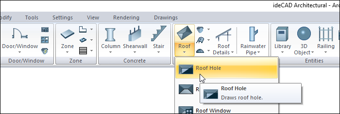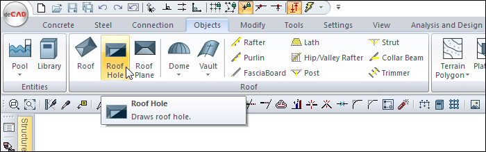 With the roof hole command, a polygonal roof gap is opened on the roof and roof surface.