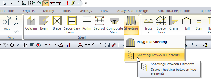 Click the Sheeting Between Elements icon from the ribbon menu.