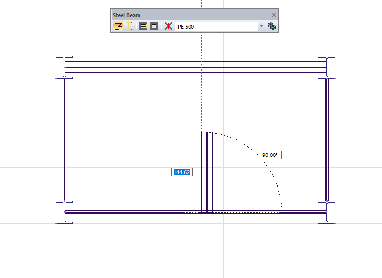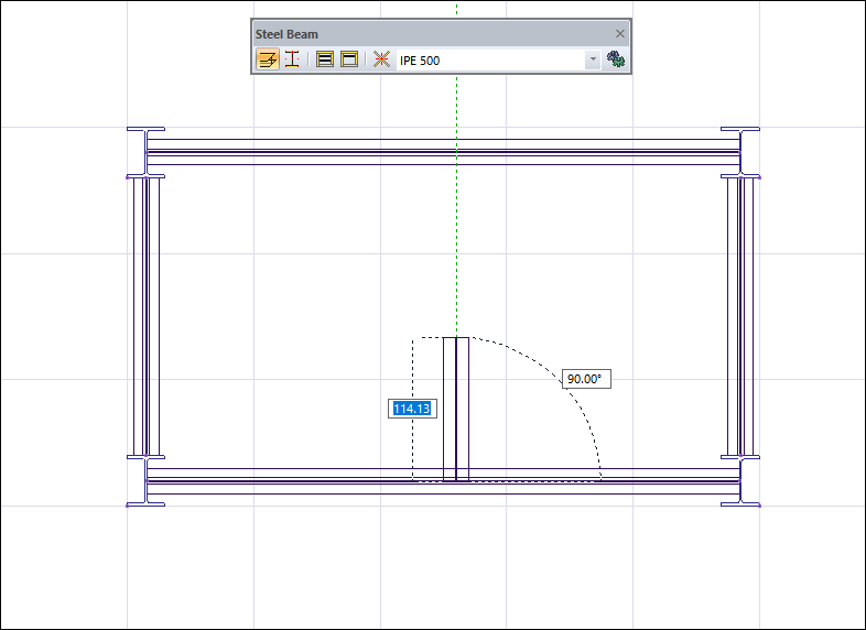 Drawing a vertical secondary beam by pressing the Shift key on the keyboard ![]() |