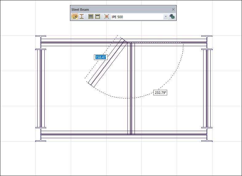 With the single secondary steel beam command, a single secondary steel beam is drawn between two beams.