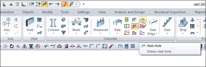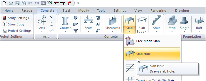 The Slab Hole command is used to open holes on the existing slab.