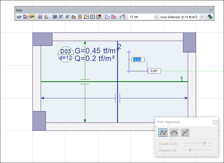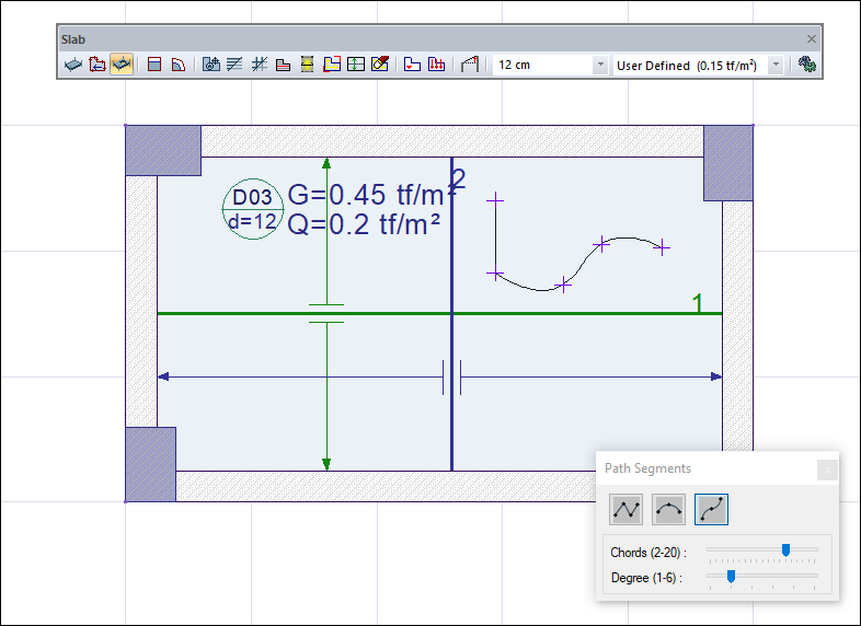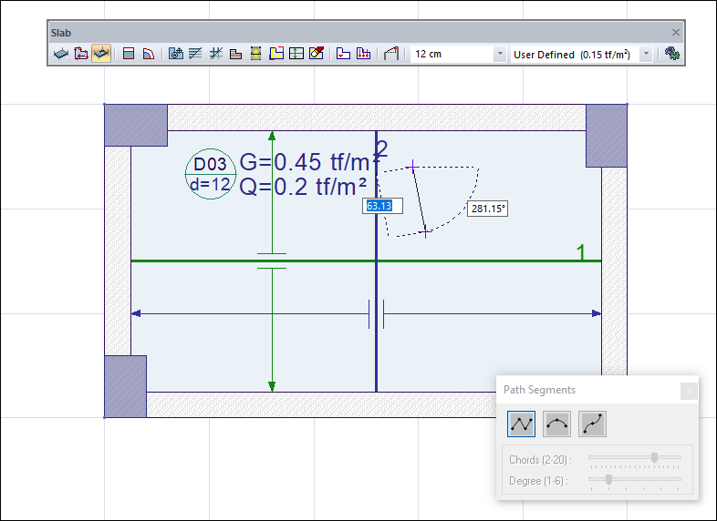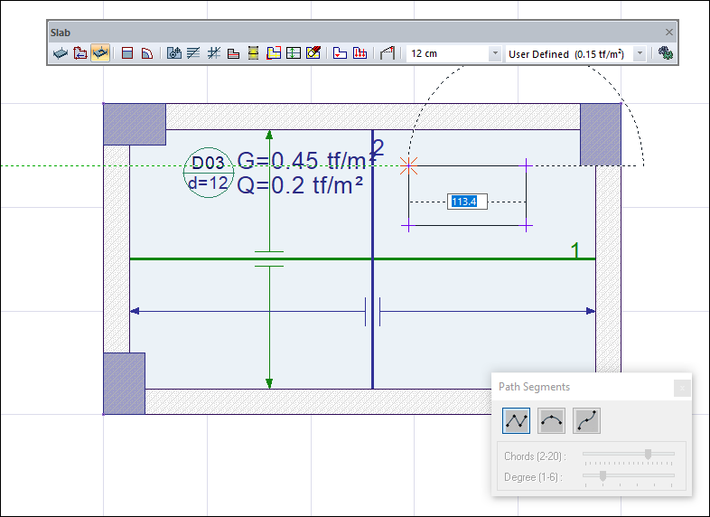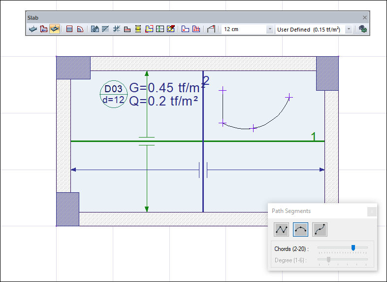 When you click on the slab icon, the path segments dialog will open.