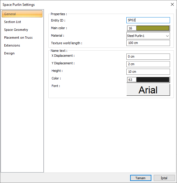 When you select your second steel beam or truss head, the space purlin settings dialog will open.
