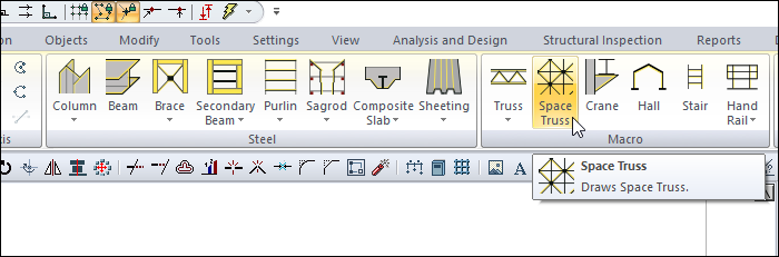Click the Space Truss icon under the Steel menu with the left mouse button.