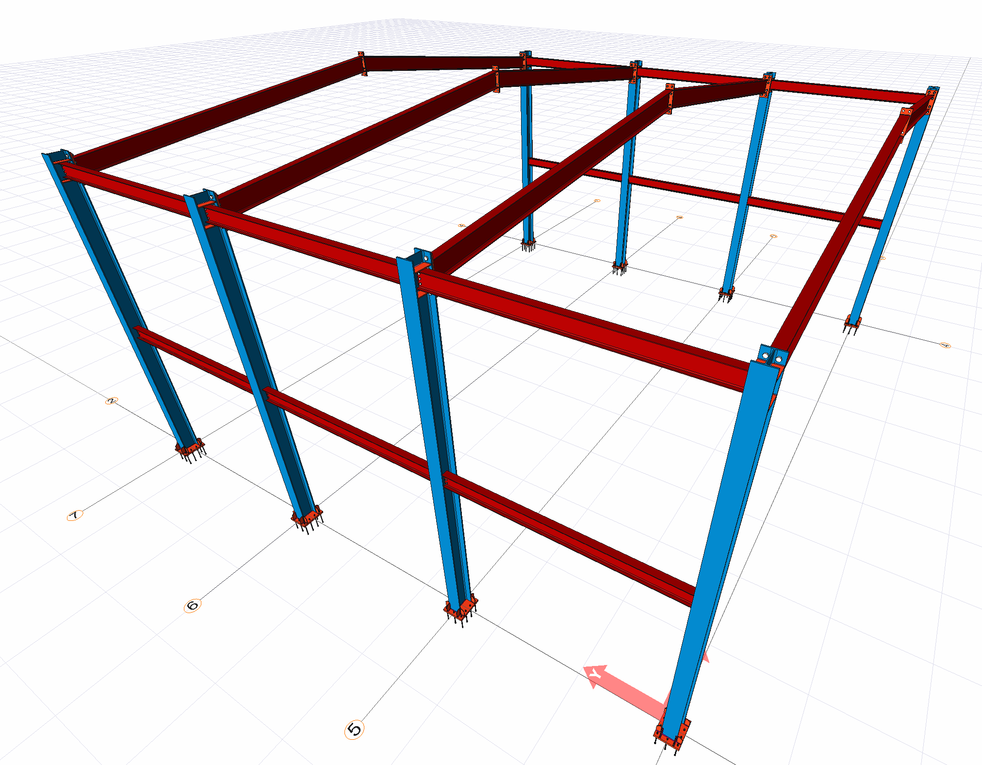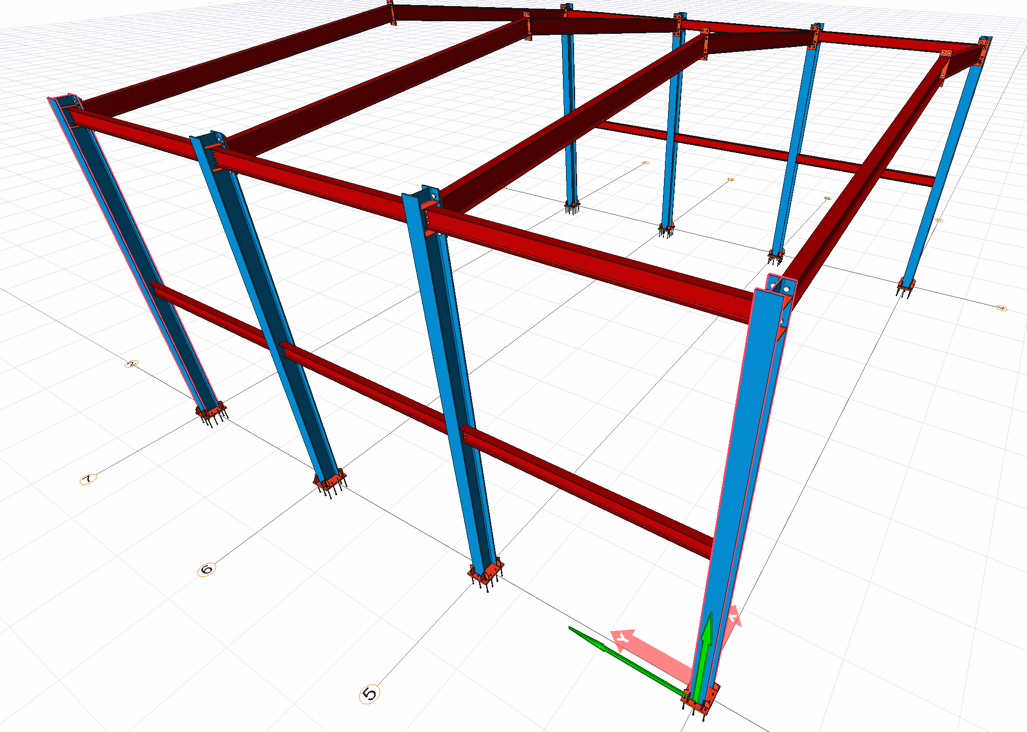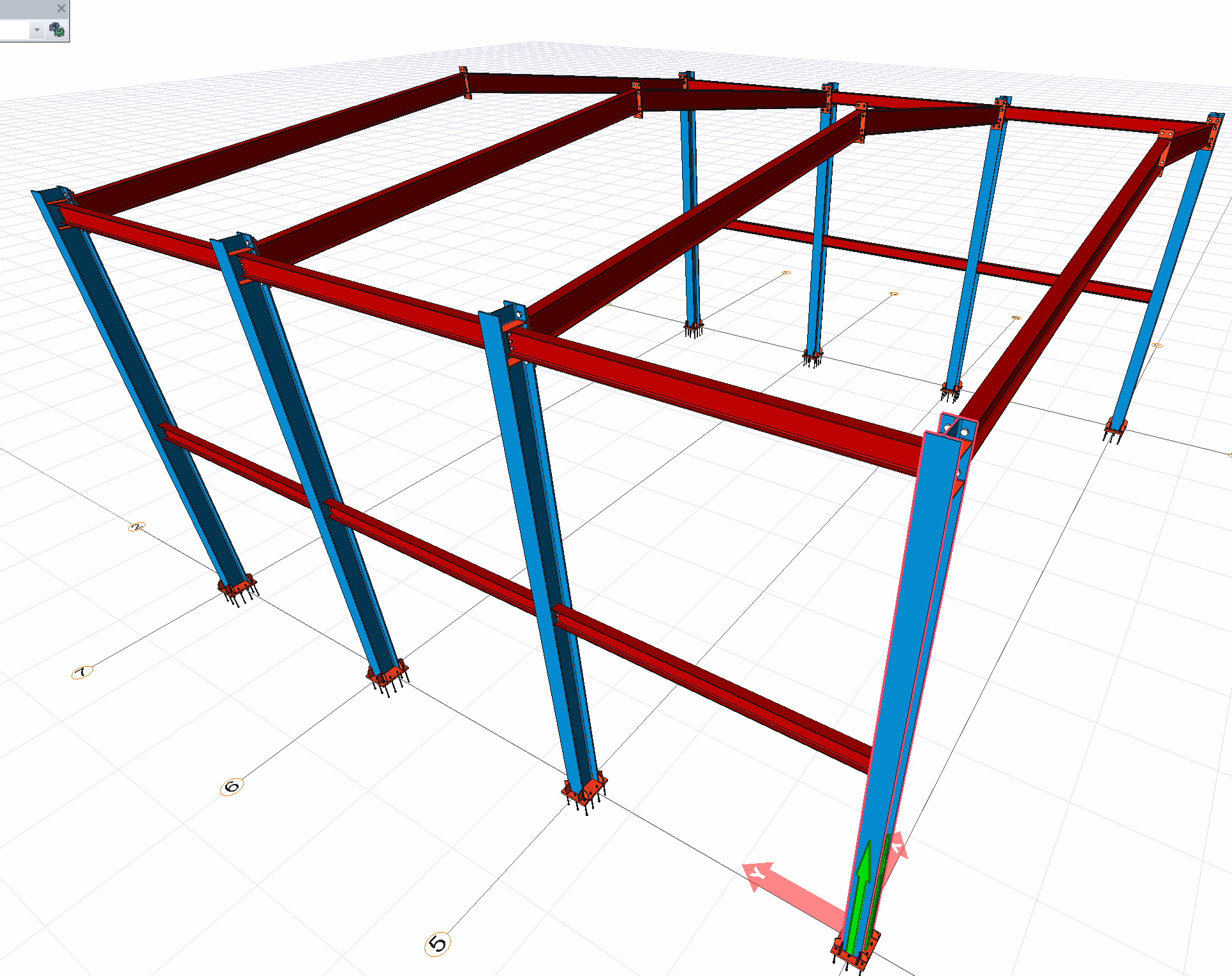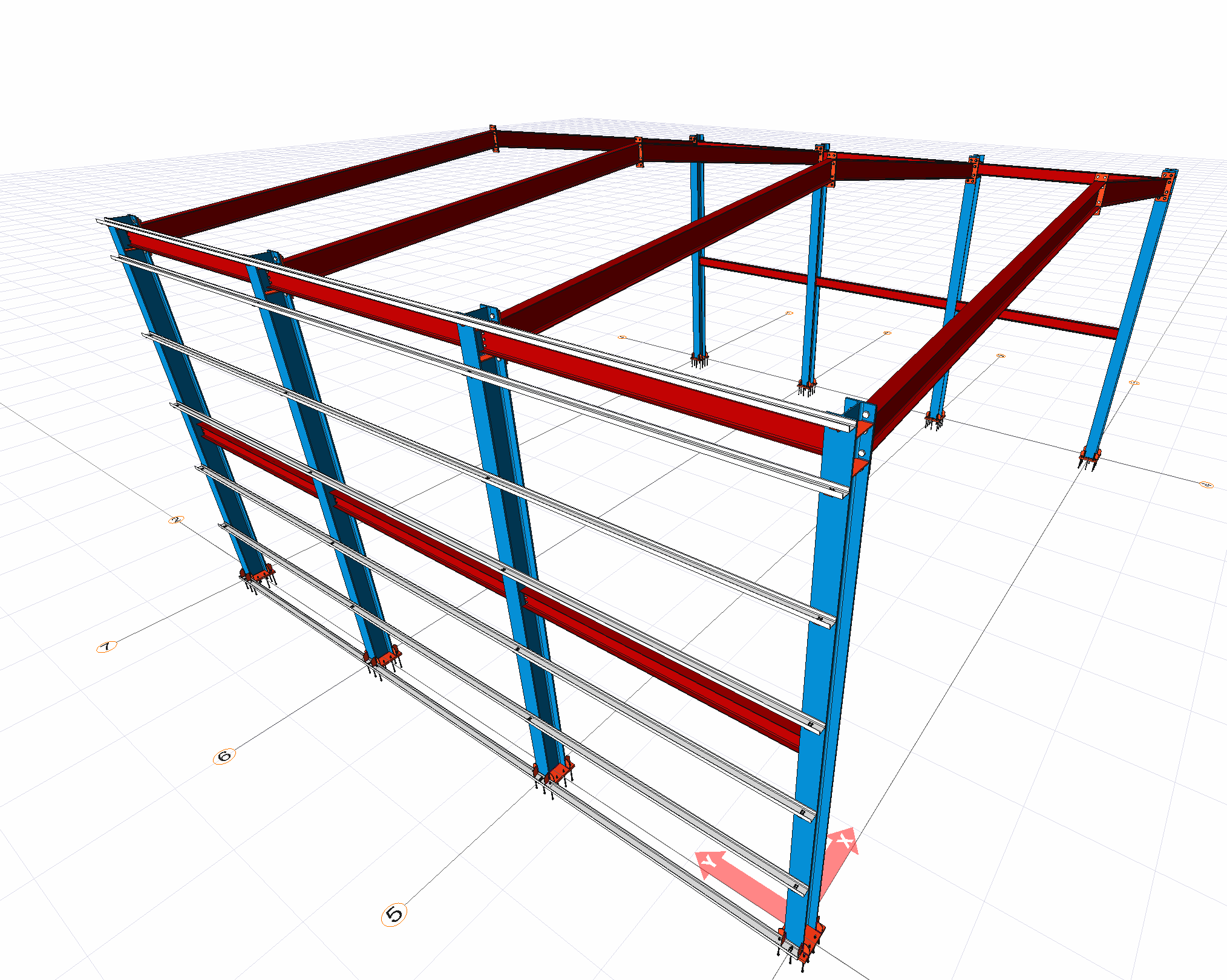 With the Steel Tie command, steel ties belonging to the steel design are created. Steel ties are steel elements drawn between columns.