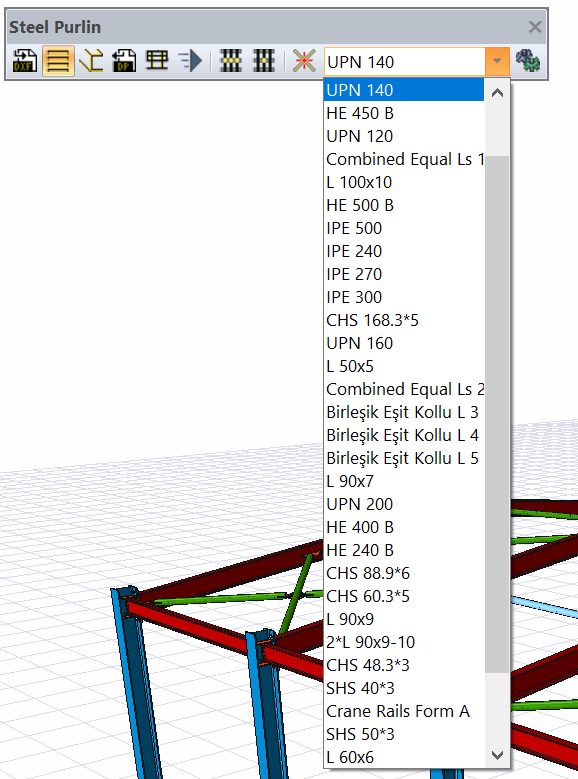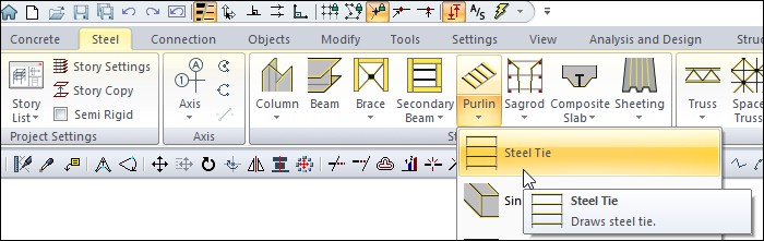 Click the profile list in the steel Tie toolbar and select a profile from the list.
