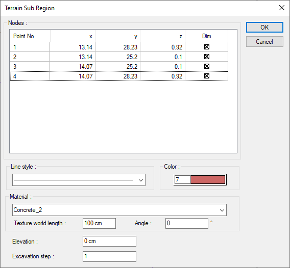 Excavation step ![]() Terrain and pieces of terrain are given numbers for excavation calculations. The excavations of the terrain and terrain plots with the same number are calculated and shown as total value at once, and the excavation of the terrain or terrain plots that are numbered separately as a separate item |