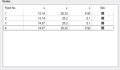 Nodes ![]() The coordinates of the elevation points placed are given. It is not intervened. |