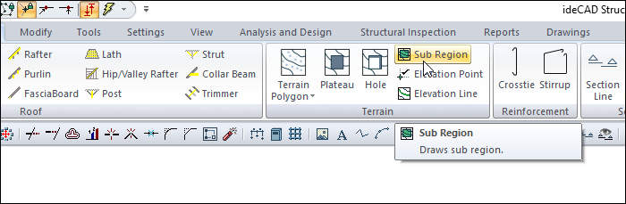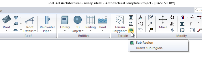 The sub region command is certain surfaces on the terrain that fit the terrain slope. In the architectural project design, surfaces that want to define different materials such as walkways and paths are created as sub-regions.