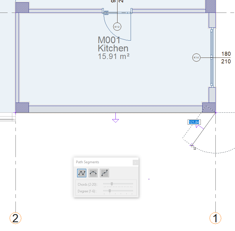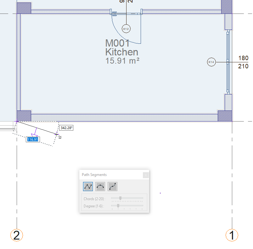 In the drawing area, determine the 1st point of the facade element by clicking with the left mouse button.