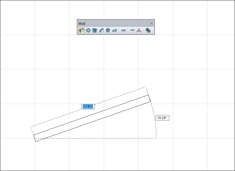 A wall preview will be created in the direction and length of the angle you entered in the drawing area.