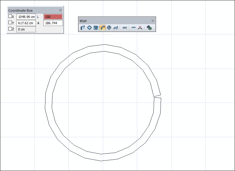 Creating an arc wall by clicking on the drawing area ![]() ![]() |