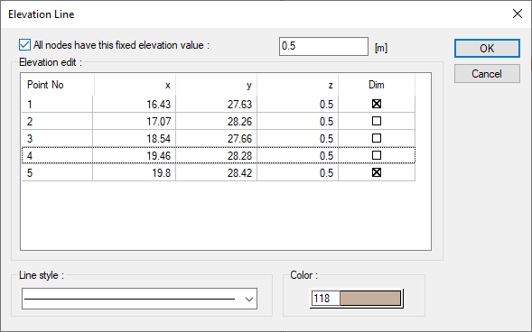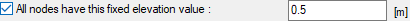 All nodes have this fixed elevation value ![]() The feature is activated and the value entered here is applied to all elevation points. |