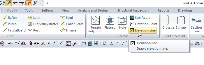 Entering the elevation value (50 cm) into the field toolbar that is opened while in the elevation line command. ![]() |