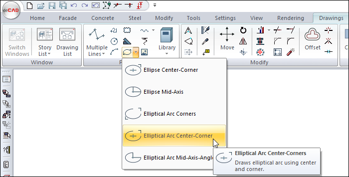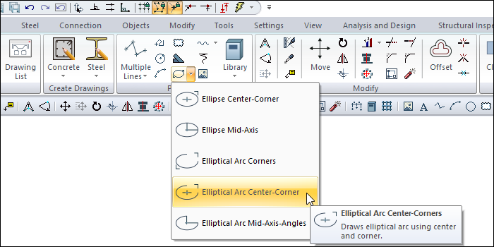 Click the Elliptical Arc Center-Corners icon in the ribbon menu .