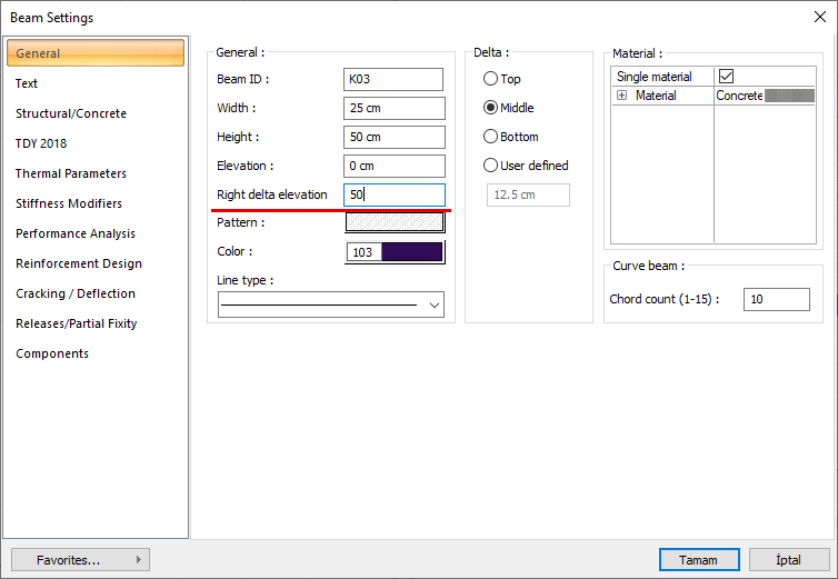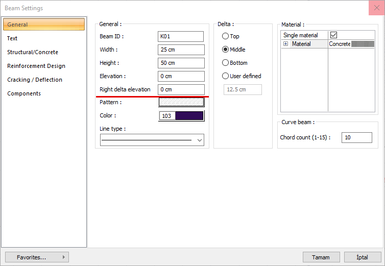 You can access the right delta elevation feature from the Beam Settings dialog.