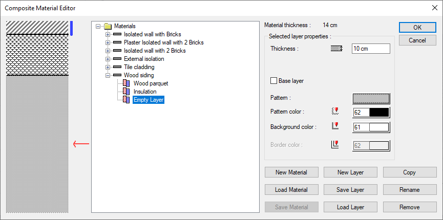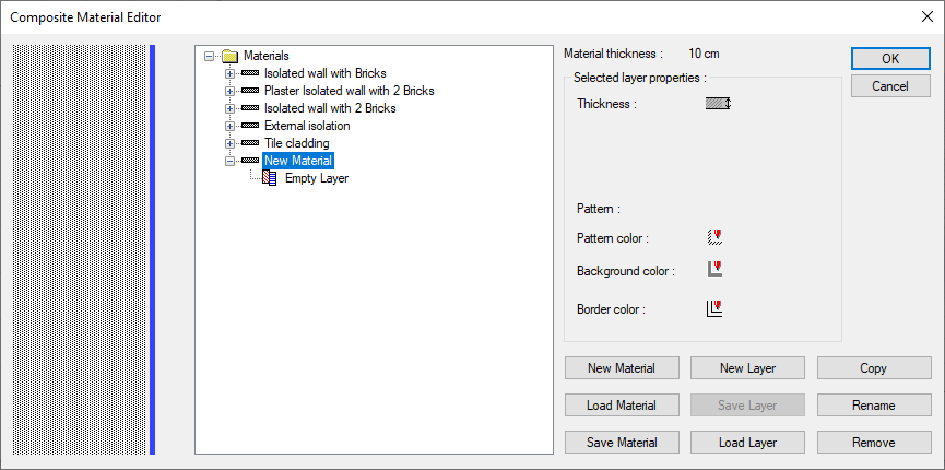 A line named New Material will appear in the composite materials list . The new item can change the name at this stage.