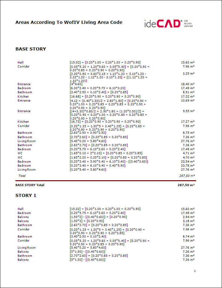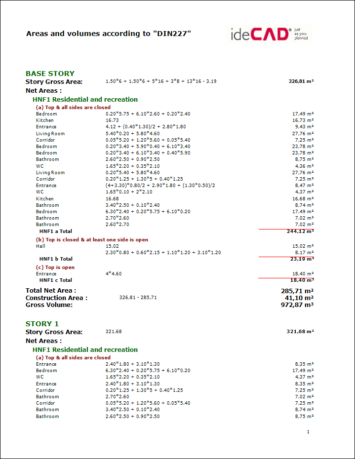 Quantities are created in ideCAD according to DIN277 and II BV standards.