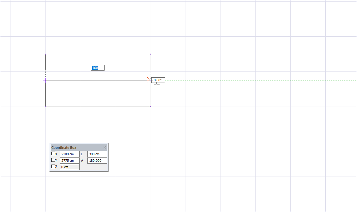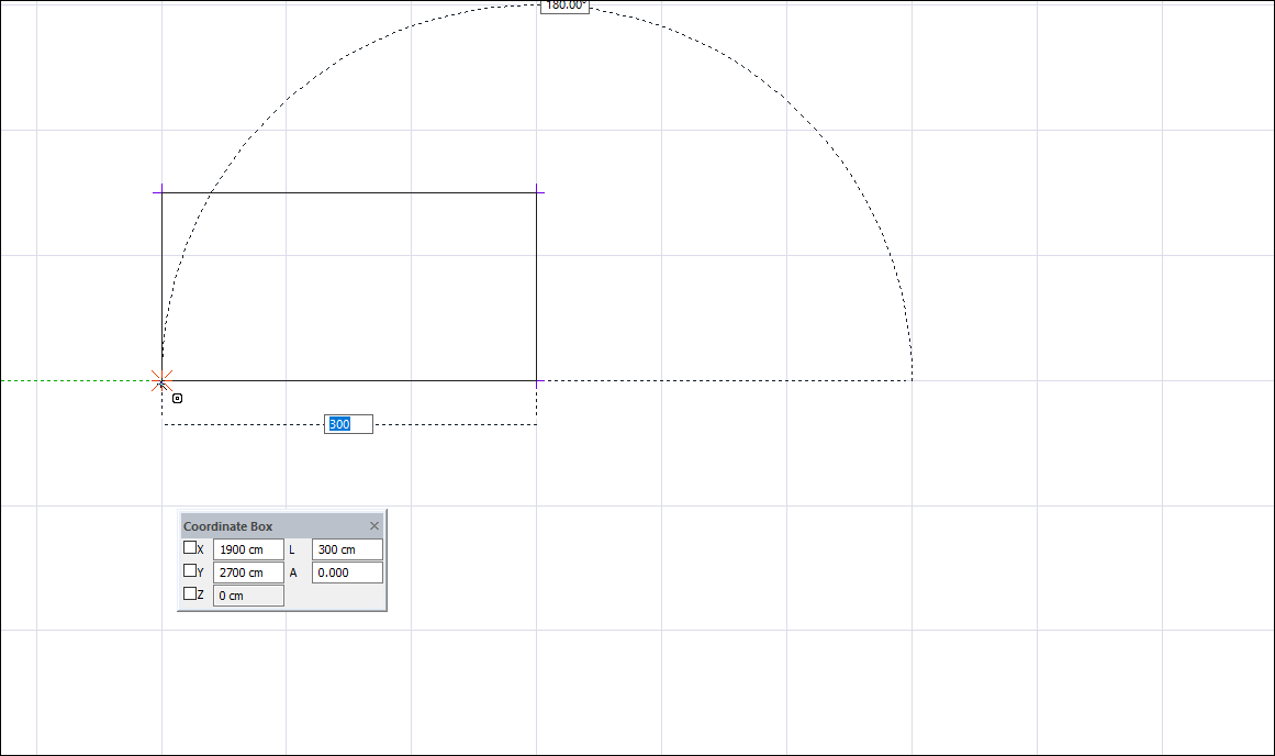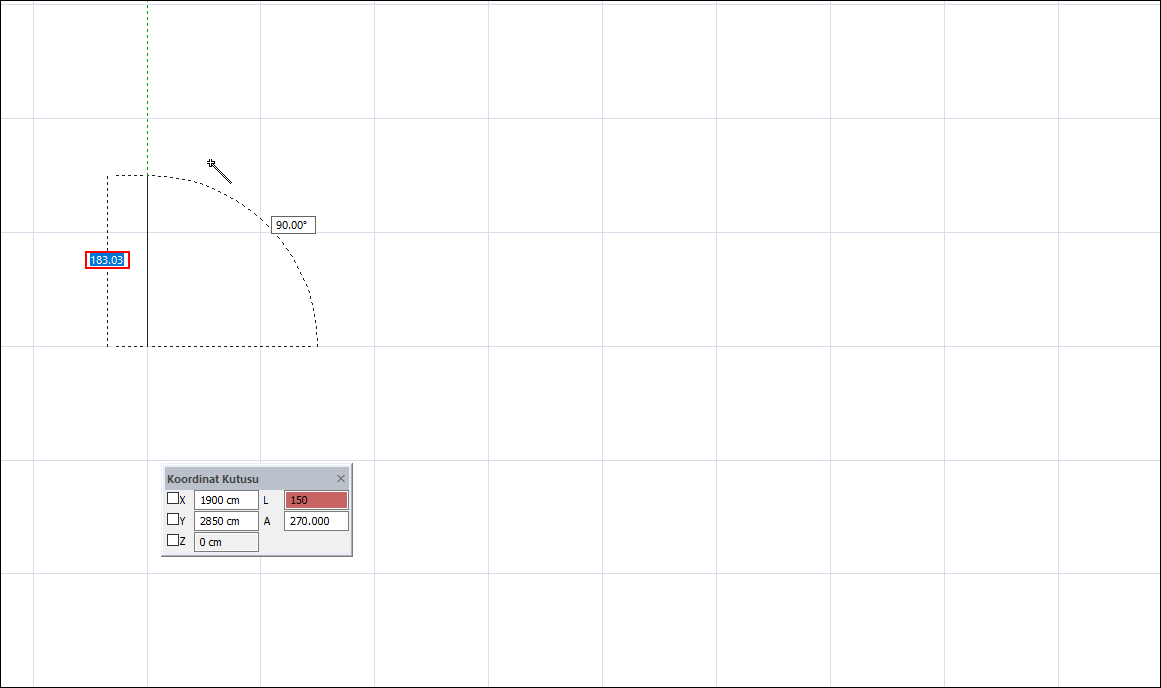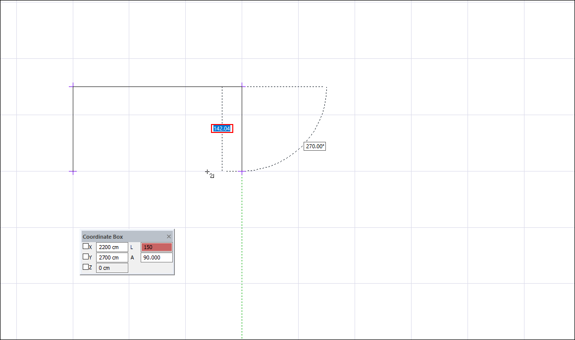 Click on the starting point. Press L on the keyboard to enter the length . The cursor will go to the L digit in the coordinate box . Enter 150 (cm) as the length value here and press enter. The line being drawn will be limited by the length value.