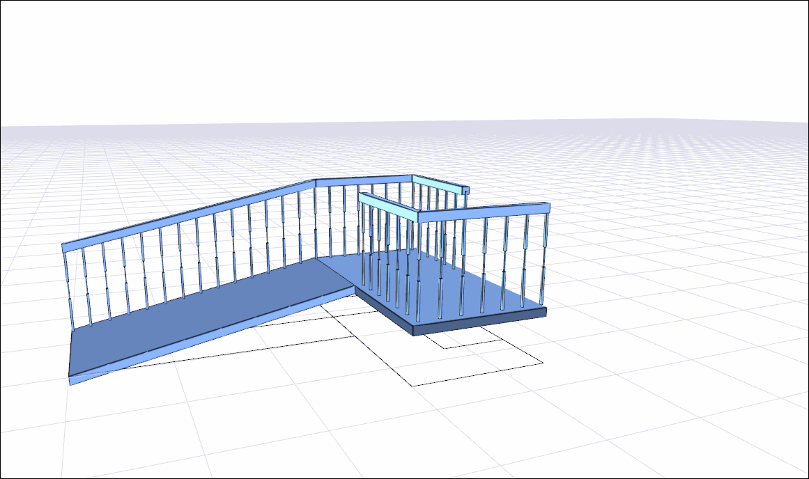 With the path command, create the outer boundary of the landing taking into account the first ramp area and the second ramp area to be added afterwards. Care should be taken to overlap the joints of the ramp area and the landing.