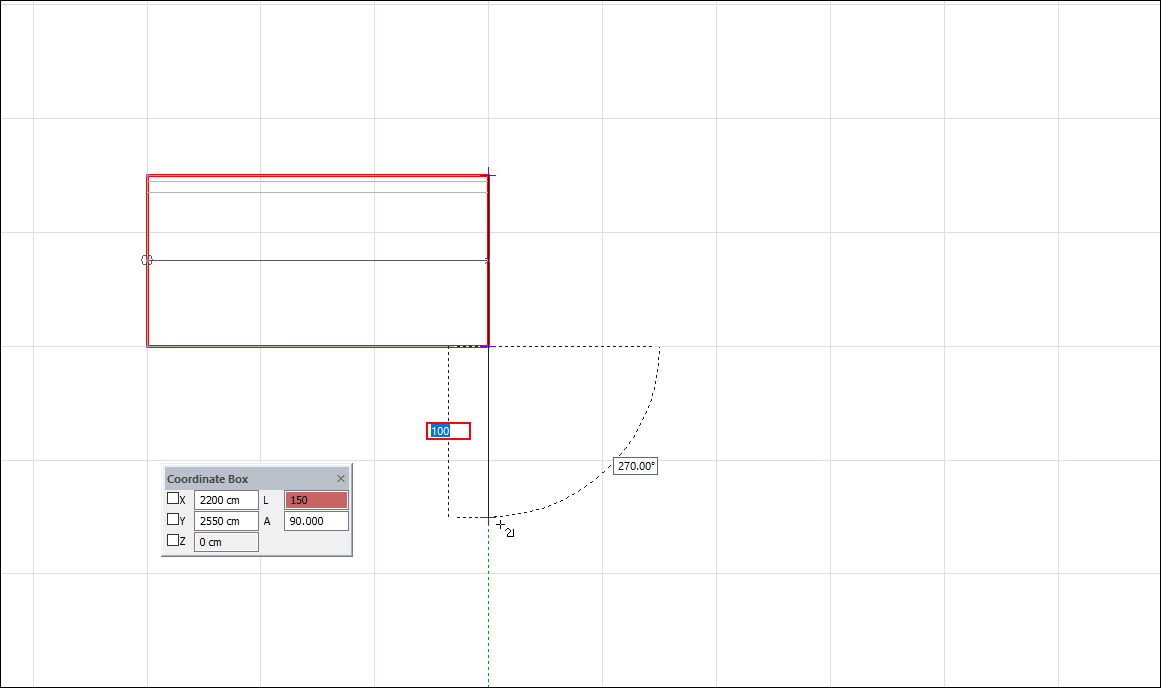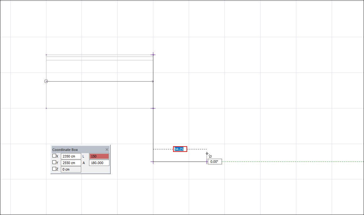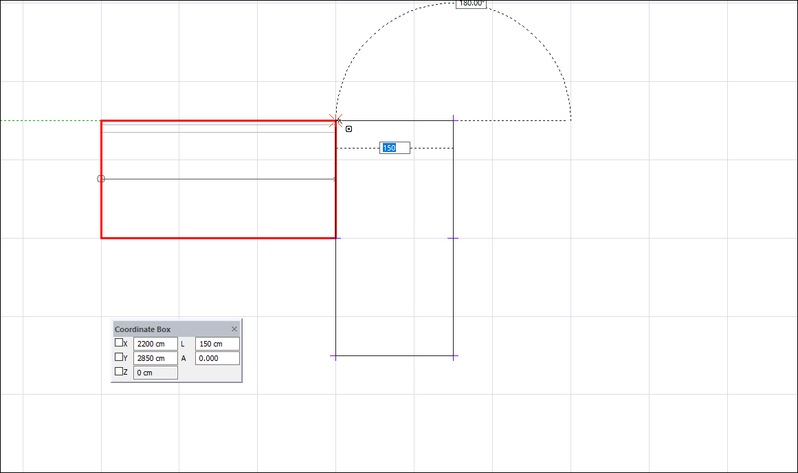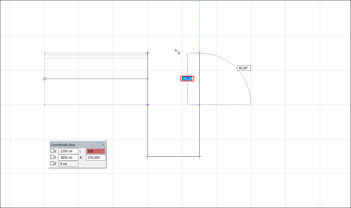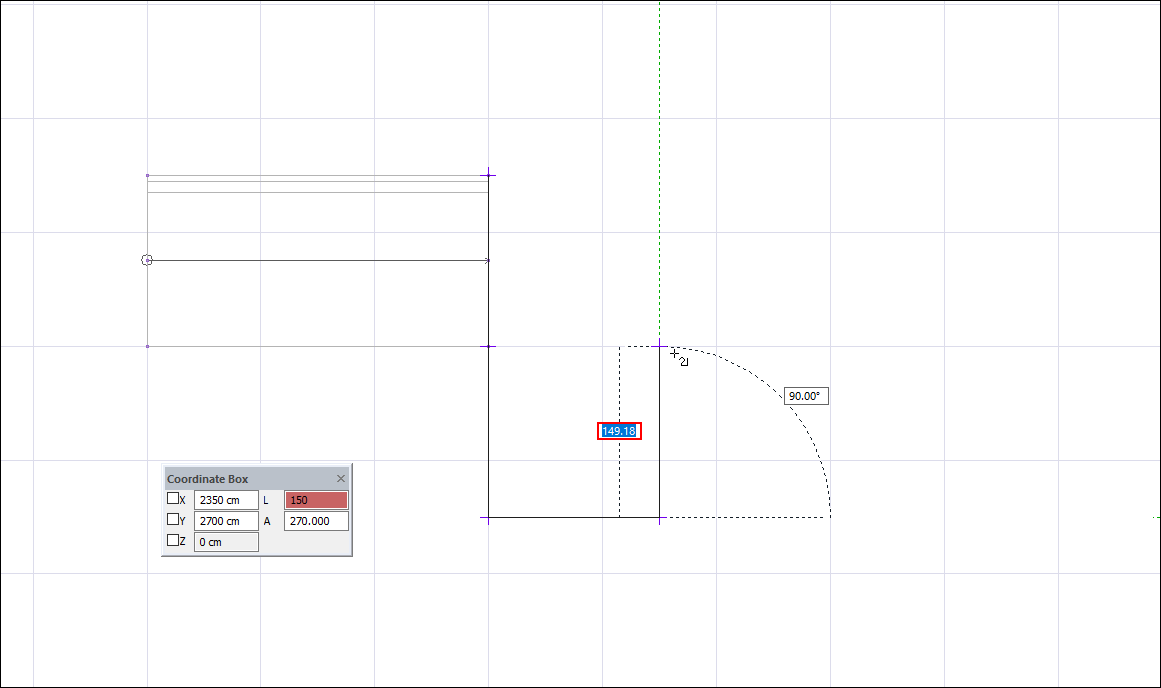 Press the L key on the keyboard to enter the landing width . Enter 150 (cm) as the length value and press Enter.