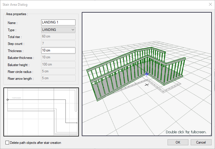 The stair areas dialog will open. Since this part will be the landing, select the landing from the "Type" section.