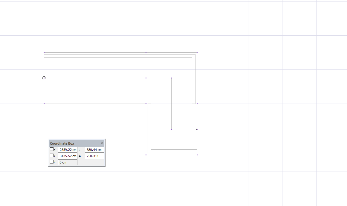 Start to create the outer border of the landing by clicking on the upper right and lower upper joints of the first ramp area.