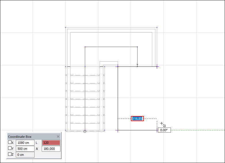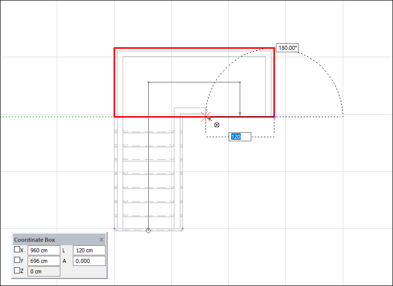 Press the L key on the keyboard to enter the width of the stair flight. Enter 120 (cm) as the length value and press Enter.