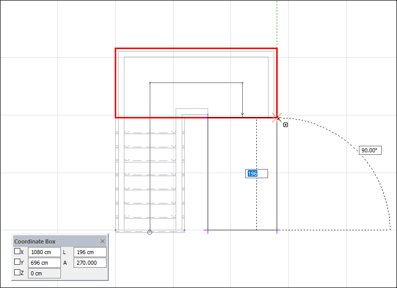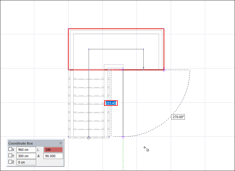 Press L on the keyboard to enter the length of the stair flight . Enter 196 (cm) for the length value and press Enter.