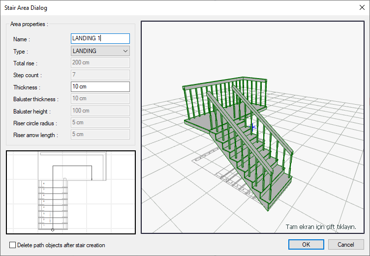The stair area dialog will open. Since this part will be the landing, select the landing from the "Type" section.