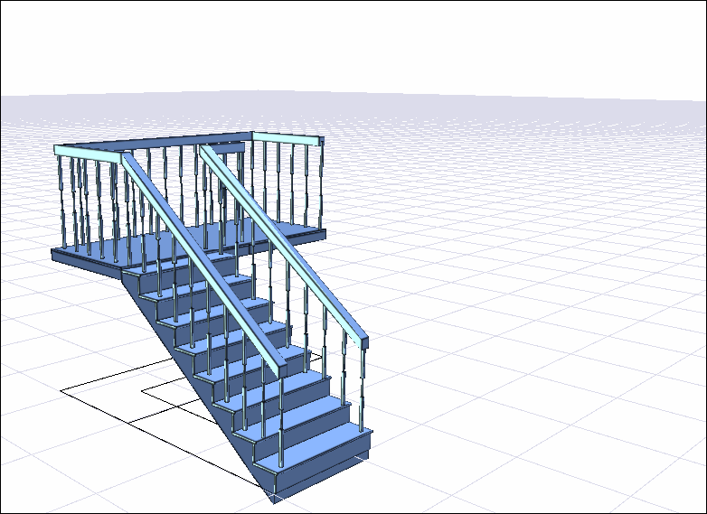 Begin to create the outer border of the landing by clicking the right and left upper joints of the first stair flight.