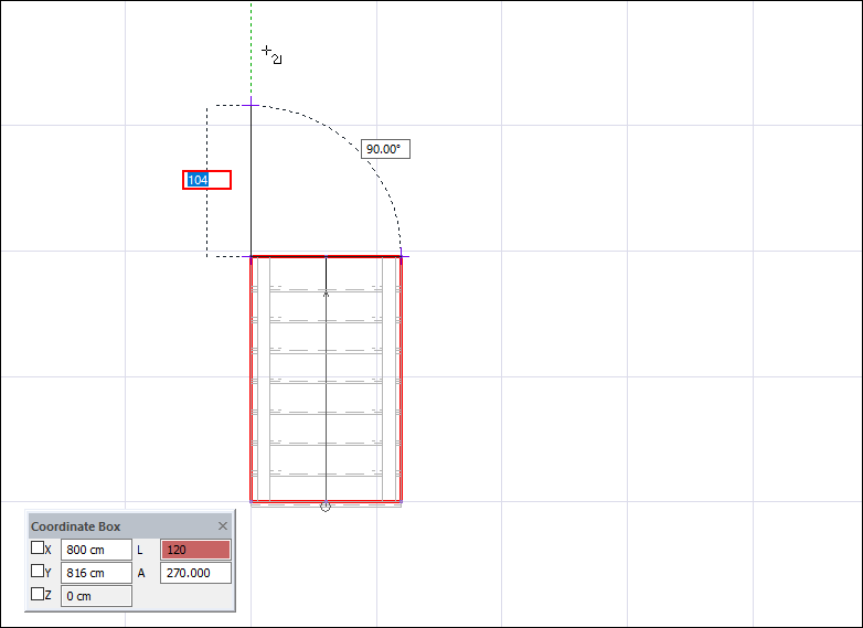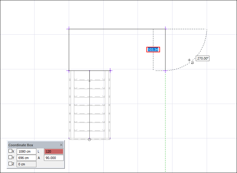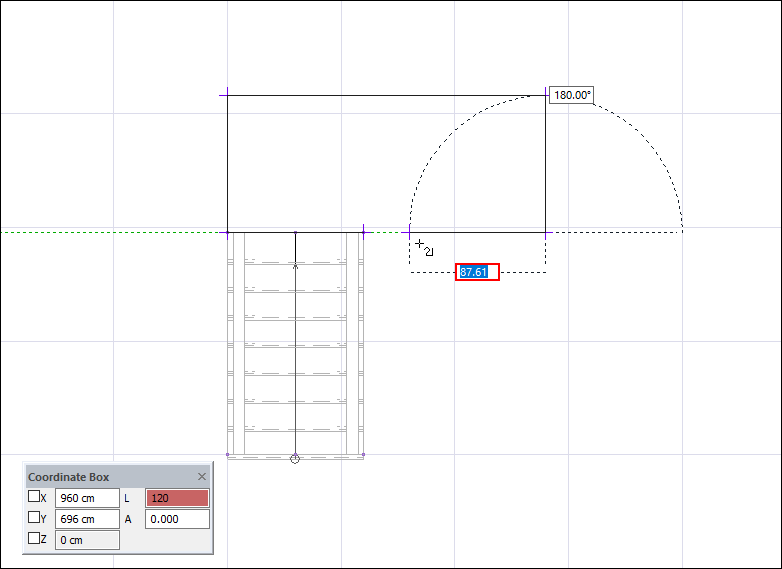 Press the L key on the keyboard to enter the landing width . Enter 120 (cm) as the length value and press Enter.