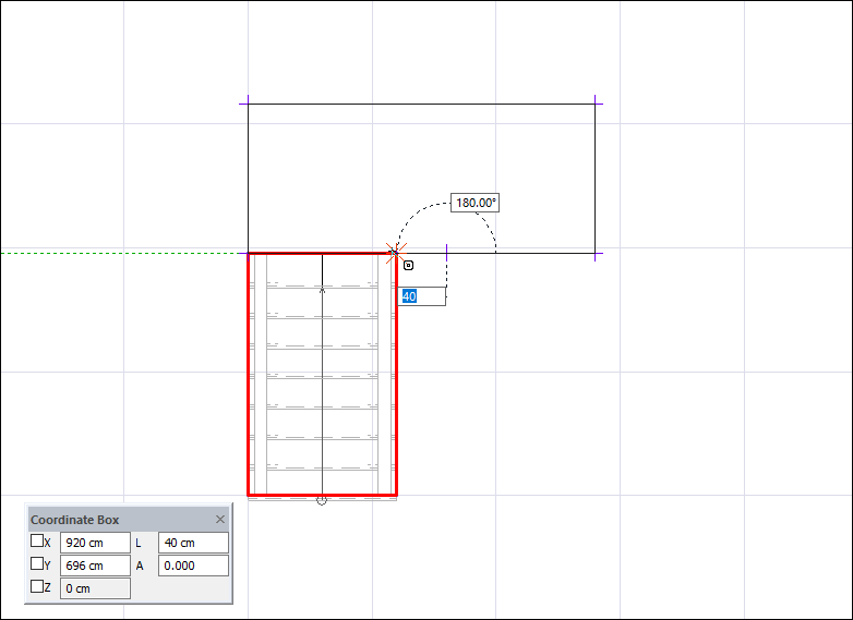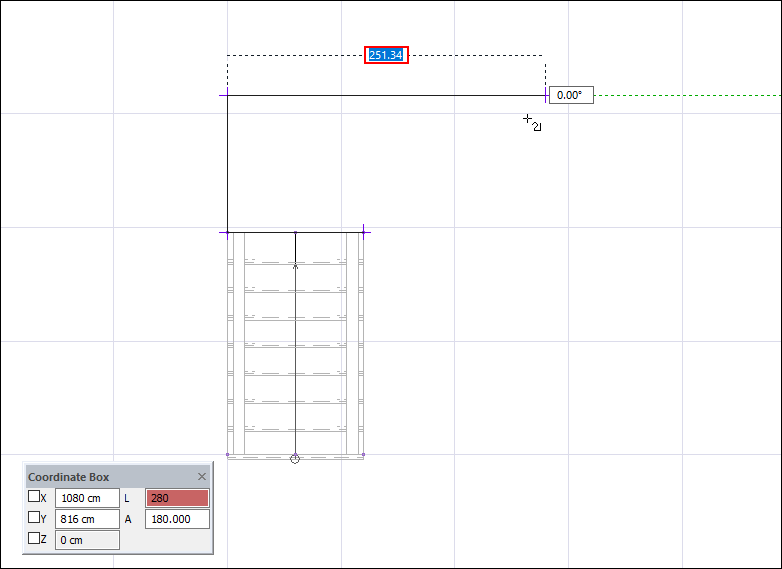 Press the L key on the keyboard to enter the landing size. Enter 280 (cm) as the length value and press Enter.