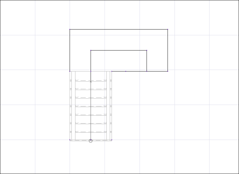 With the path command, create the outer boundary of the landing taking into account the boundaries of the 1st stair flight and the boundaries of the 2nd stair flight to be added afterwards. Care should be taken to overlap the joints of the stair flights and the landing.