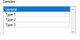 Samples ![]() Four types are defined as general, type1, type2, and type3, and each type is associated with a material. Assign the materials you want to the type you want from the material list on the side by selecting the types from the table. |