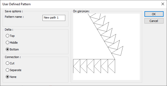 With the define pattern path command, the shape created with primitive objects on the plan view is defined as the pattern path. Delta and connection type are adjusted, pattern path is created by giving the pattern name.