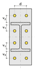 Group 3 ![]() The distance value of the bolts to the beam is entered. The values to be entered are shown in the schematic drawing. |