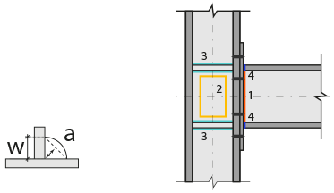 In the design data, the connection elements material is defined. The condition that the main element in the weld joint has less strength than the weld strength is controlled.