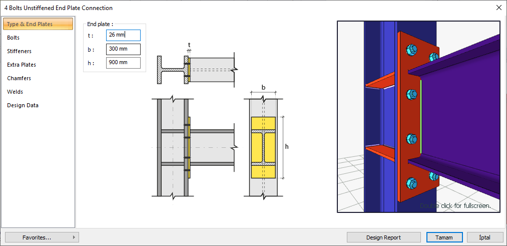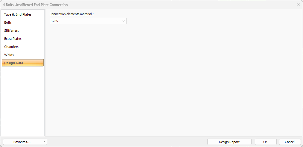 Location of the 4 Bolts Unstiffened End Plate Connection Settings Dialog