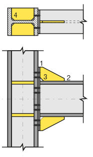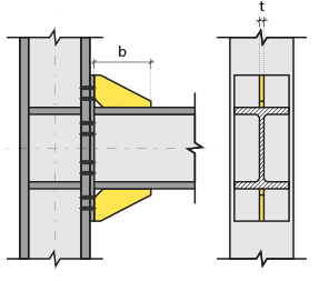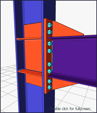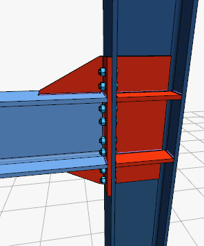 With the 8 Bolts Stiffened End Plate Connection command, column-beam connection is defined.