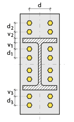 Horizontal arrangement ![]() The horizontal arrangement distance value of bolts is entered. The values to be entered are shown in the schematic drawing. |
