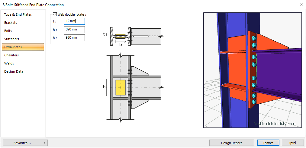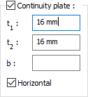 Web doubler plate ![]() If the column body thickness is insufficient, web doubler are used to meet the shear effect of the panel area. If the web doubler plate will be made, the option is marked. Web doubler plate is determined by entering values. The values to be entered are shown in the schematic drawing. |