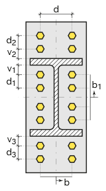 Group 1 ![]() Distance values of bolts to beam and other bolts are entered. The values to be entered are shown in the schematic drawing. |