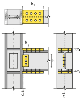 With the Bolted Flange Plate Connection command, column-beam connection is defined.