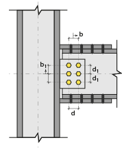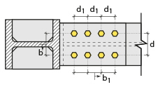 Horizontal arrangement ![]() The horizontal arrangement distance value and number of bolts are entered. The values to be entered are shown in the schematic drawing. |