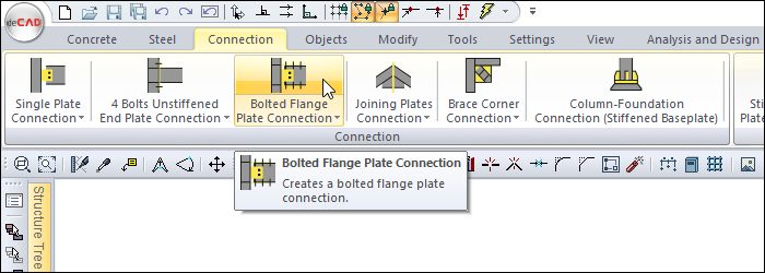 From the Connection menu, click the Bolted Flange Plate Connection icon.